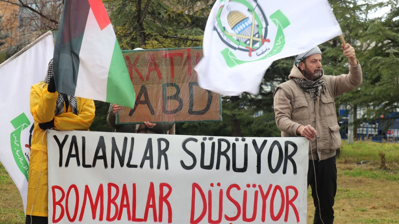 Ankara’da ABD Büyükelçiliği önünde düzenlenen Gazze Nöbeti’nde Filistin’e destek mesajları verildi.