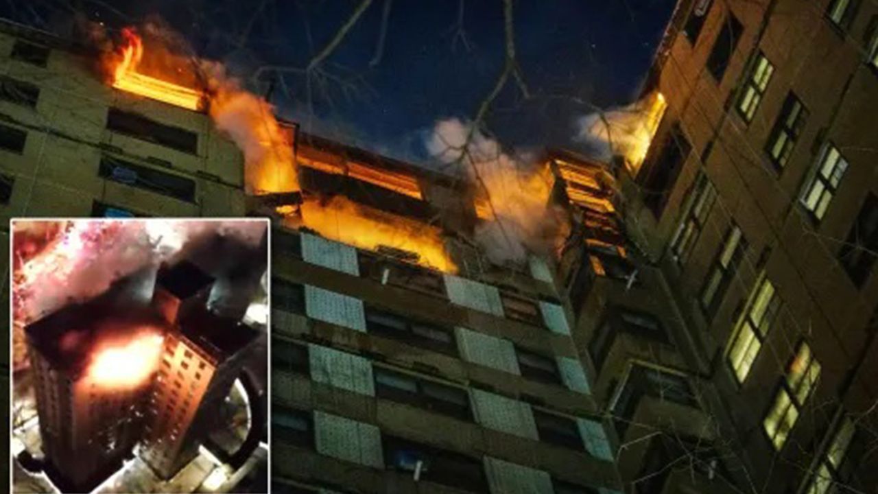 Yetkililerin verdiği bilgiye göre, binanın 16’ncı katında patlama sonrası alevler yükseldi.