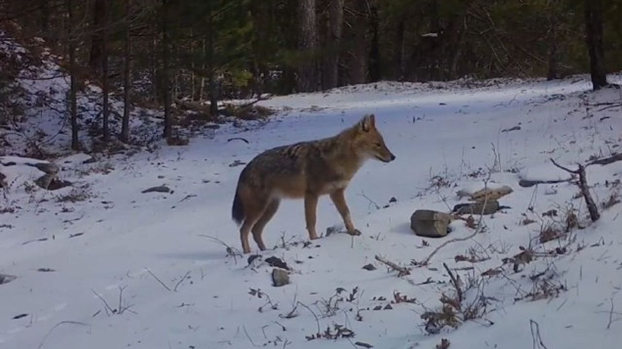 Doğa Koruma ve Milli Parklar Genel Müdürlüğü tarafından ormanlık alanlara yerleştirilen fotokapanlar, yiyecek arayışındaki bir çakalı görüntüledi.