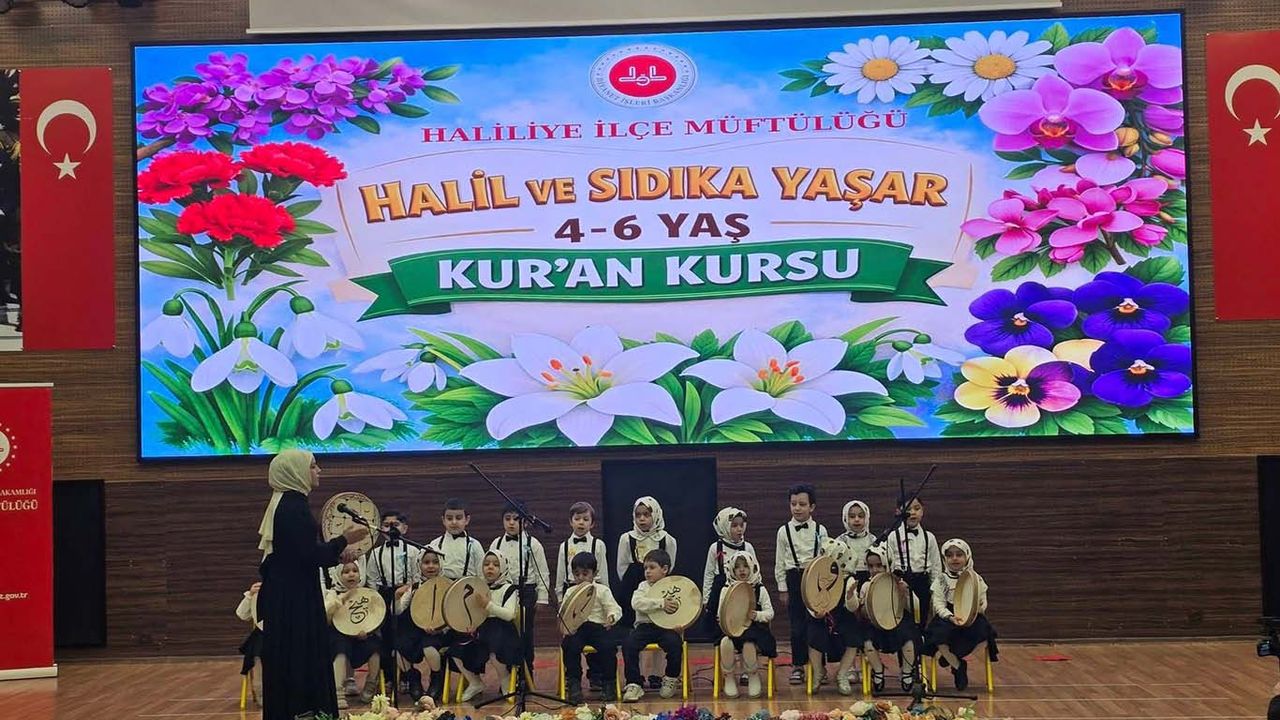 Şanlıurfa Haliliye İlçe Müftülüğüne bağlı Halil ve Sıdıka Yaşar 4-6 Yaş Kur’an kursu öğrencileri tarafından dönem sonu programı düzenlendi. Haliliye ilçesinde, Millî Eğitim Müdürlüğü Konferans Salonu’nda gerçekleştirilen programa İlçe Müftüsü Ramazan Yıldırım, İl Müftü Yardımcısı Zeynep Kaya Demirtaş, öğrencilerin velileri ve çok sayıda davetli katıldı.
