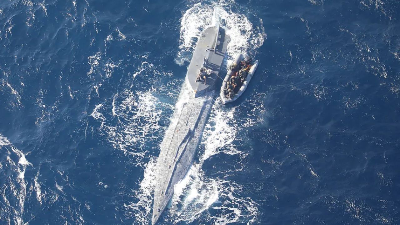 Operasyon kapsamında, uyuşturucu kaçakçılığında kullanılan bir denizaltı durduruldu.