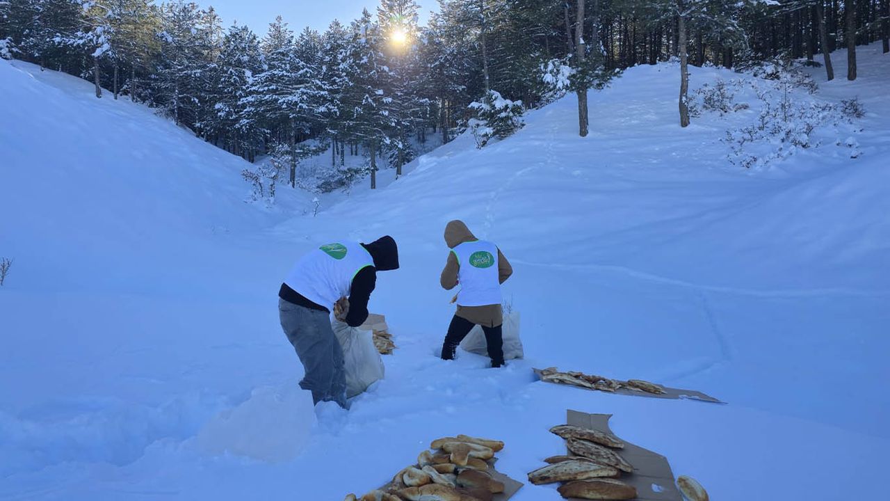Gençlik kolları üyeleri, yabani hayvanların beslenme sıkıntısı yaşamaması için ormanlık alanlara yiyecek bırakırken, kuşlar için de tamamen kendi imkânlarıyla yemlikler hazırladı.