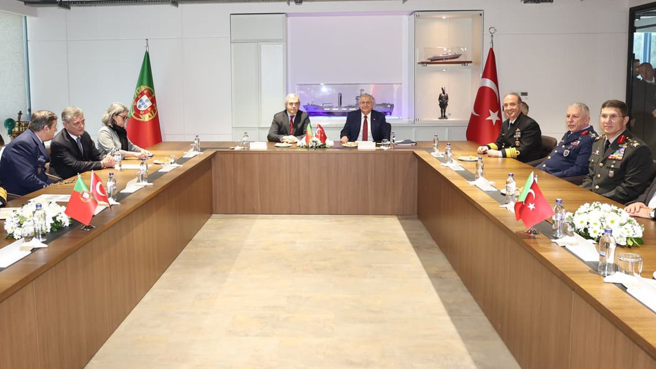 Milli Savunma Bakanı Yaşar Güler ve Portekiz Savunma Bakanı Nuno Melo, Portekiz donanması için inşa edilecek denizde ikmal ve lojistik destek gemisinin ilk gemi kızağa koyma töreninin ardından toplantı gerçekleştirdi.