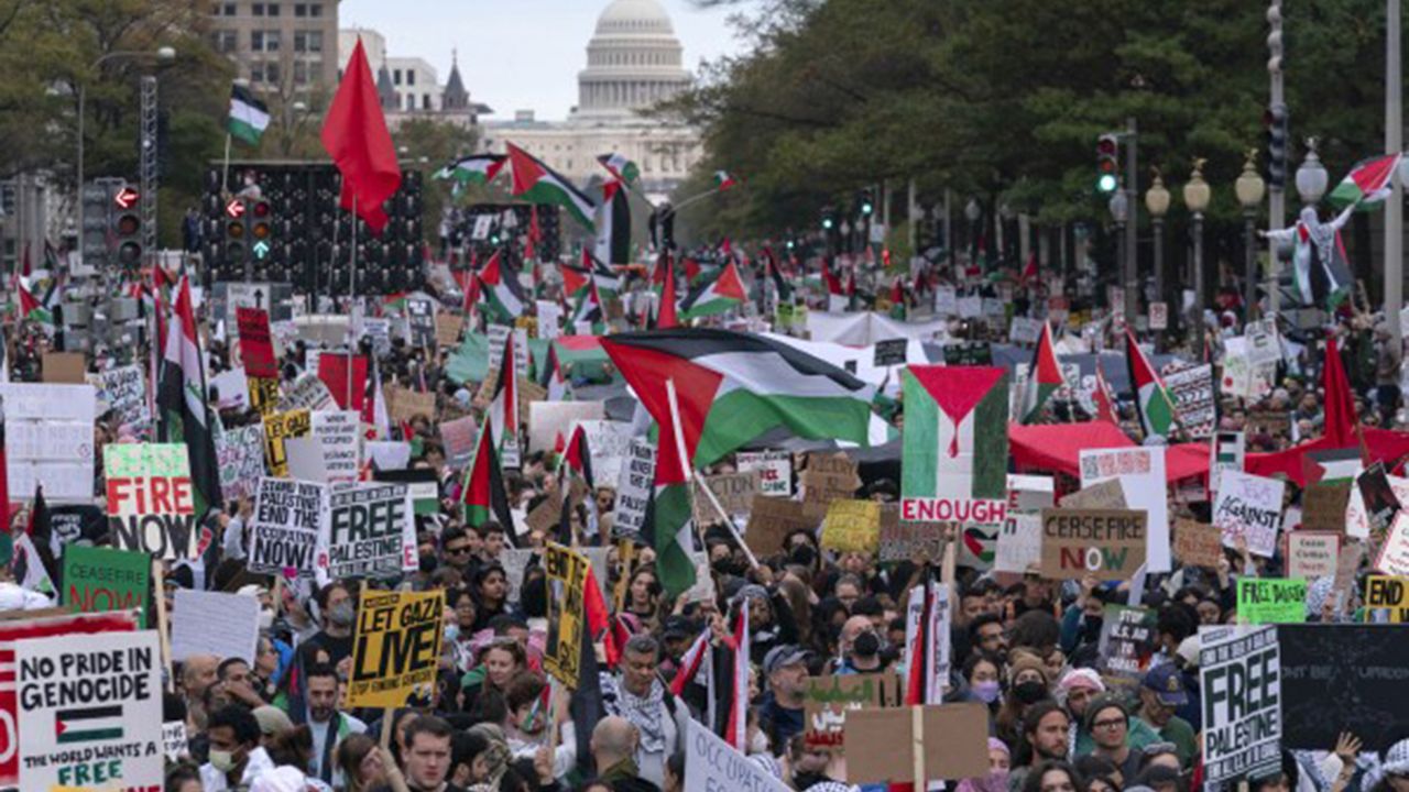 Eylemciler, siyonist rejimin Filistinlilere yönelik katliamlarını kınarken, Gazze'ye yardım girişlerinin engellenmesini "insanlık suçu" olarak niteledi. ABD yönetimine, tüm sınır kapılarının açılması ve insani yardımın kesintisiz bir şekilde ulaştırılması için baskı çağrısı yapıldı.