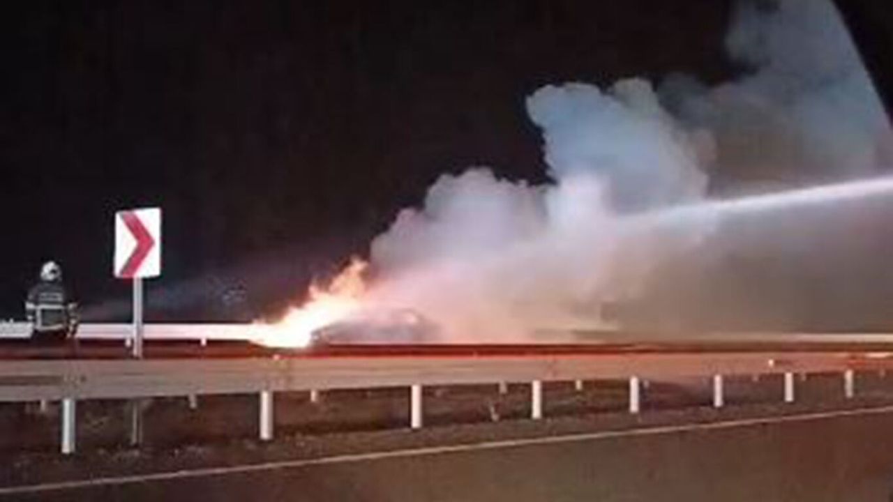 Batman–Bismil yolunda seyir halinde bulunan bir otomobil, henüz bilinmeyen bir nedenle alev aldı.