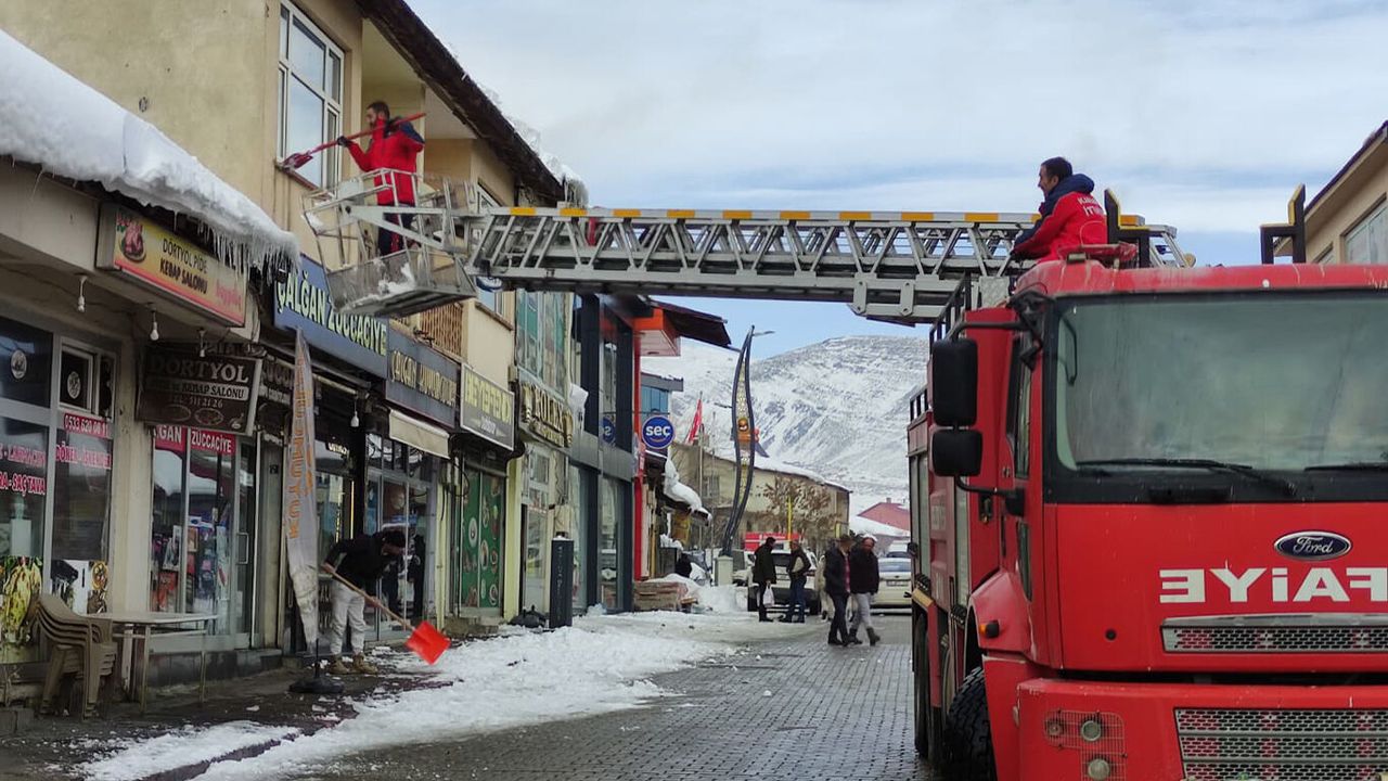 Karlıova ilçesinde yoğun kar yağışının ardından çatılarda oluşan buz sarkıtlarının tehlike oluşturmaması için Karlıova Belediyesince çalışma başlatıldı.