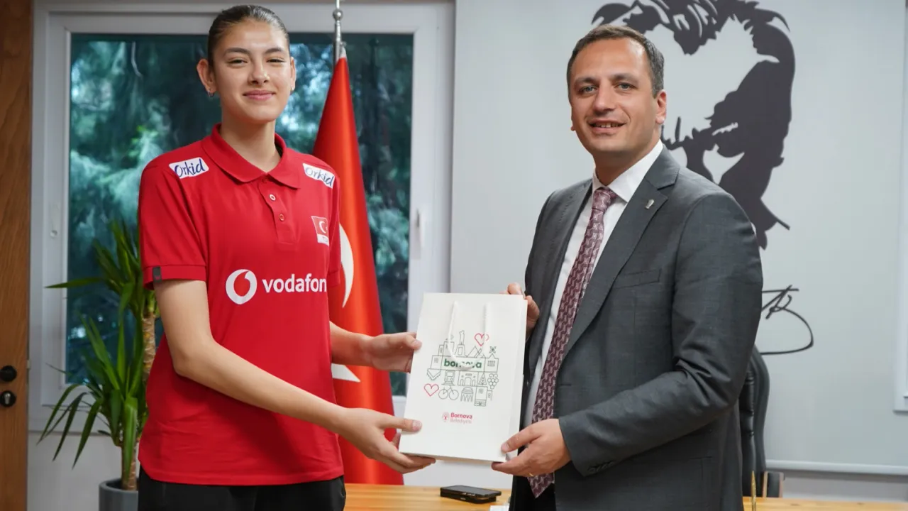İzmir'de 15 yaşındaki Hasret Tuncer, Bornova Belediyespor’un voleybol branşında Milli Takıma davet edilen ilk sporcusu oldu ve Ankara’daki gelişim kampına katıldı.İZMİR (İGFA) - Ankara'daki gelişim kampına katılan İzmir Bornovalı Hasret Tuncer; babası Ramazan Tuncer, Bornova Belediyesi Spor Kulübü Başkanı Tuncay Altunkaya, Spor İşleri Müdürü Cüneyt İnal ve antrenörleri Fulya Tırpancı, Hayal Özdilek ve Emre Makineci ile birlikte Bornova Belediye Başkanı Ömer Eşki’yi ziyaret etti.