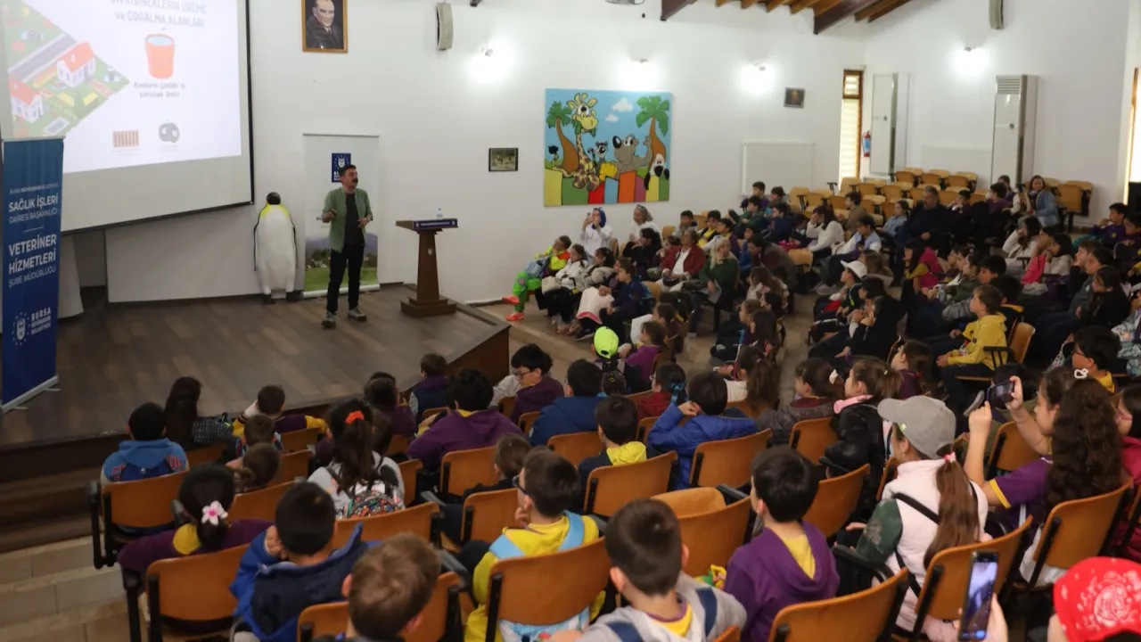 Bursa Hayvanat Bahçesi Eğitim Salonu’nda düzenlenen programda, öğrencilere vektörlerin insan sağlığına ve çevreye olan olumsuz etkileri anlatıldı.