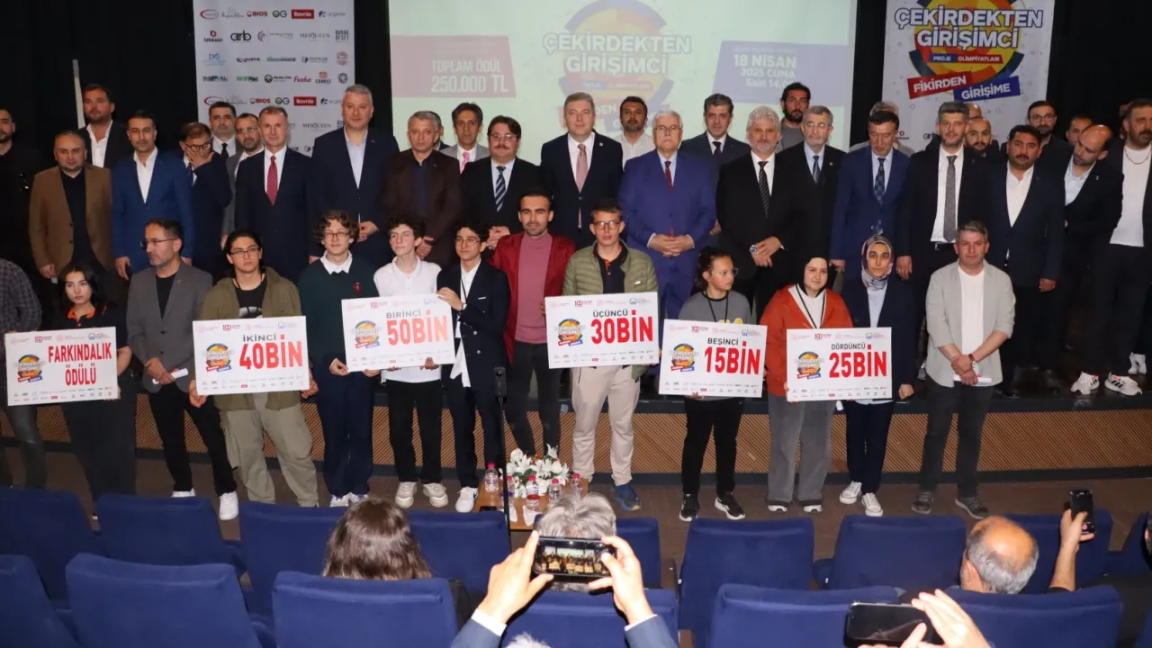 Sakarya İl Millî Eğitim Müdürlüğü ile Girişimci İş Adamları Vakfı Sakarya Şubesi iş birliğiyle yürütülen “Çekirdekten Girişimci Proje Olimpiyatları” nın sergisi ve ödül töreni, Sakarya AK Parti Milletvekili Ertuğrul Kocacık, Serdivan Belediye Başkanı Osman Çelik, Sakarya İl Millî Eğitim Müdürü Coşkun Bakırtaş, Girişimci İş Adamları Vakfı Genel Başkanı Mehmet Koç, GİV Sakarya Şube Başkanı Baki Demir, protokol üyeleri, akademisyenler, sivil toplum kuruluşu başkan ve temsilcileri, öğretmenler, öğrenciler ve ziyaretçilerin katılımıyla Şehit Erol Olçok Konferans Salonu’nda gerçekleştirildi.SAKARYA (İGFA) - Tören öncesinde ilkokul, ortaokul ve lise düzeyinde hazırlanan finalist toplam 20 proje, sergi alanında ziyaretçilerin beğenisine sunuldu. Öğrencilerin projelerinde çözüm odaklı yaklaşımı, toplumsal farkındalık oluşturma çabası ve teknolojiyi etkin kullanmaları dikkatleri çekti. 20 finalist öğrencinin ortaya koydukları ürünleri tanıttıkları proje sergisi, davetlileri yoğun ilgi gösterdi.