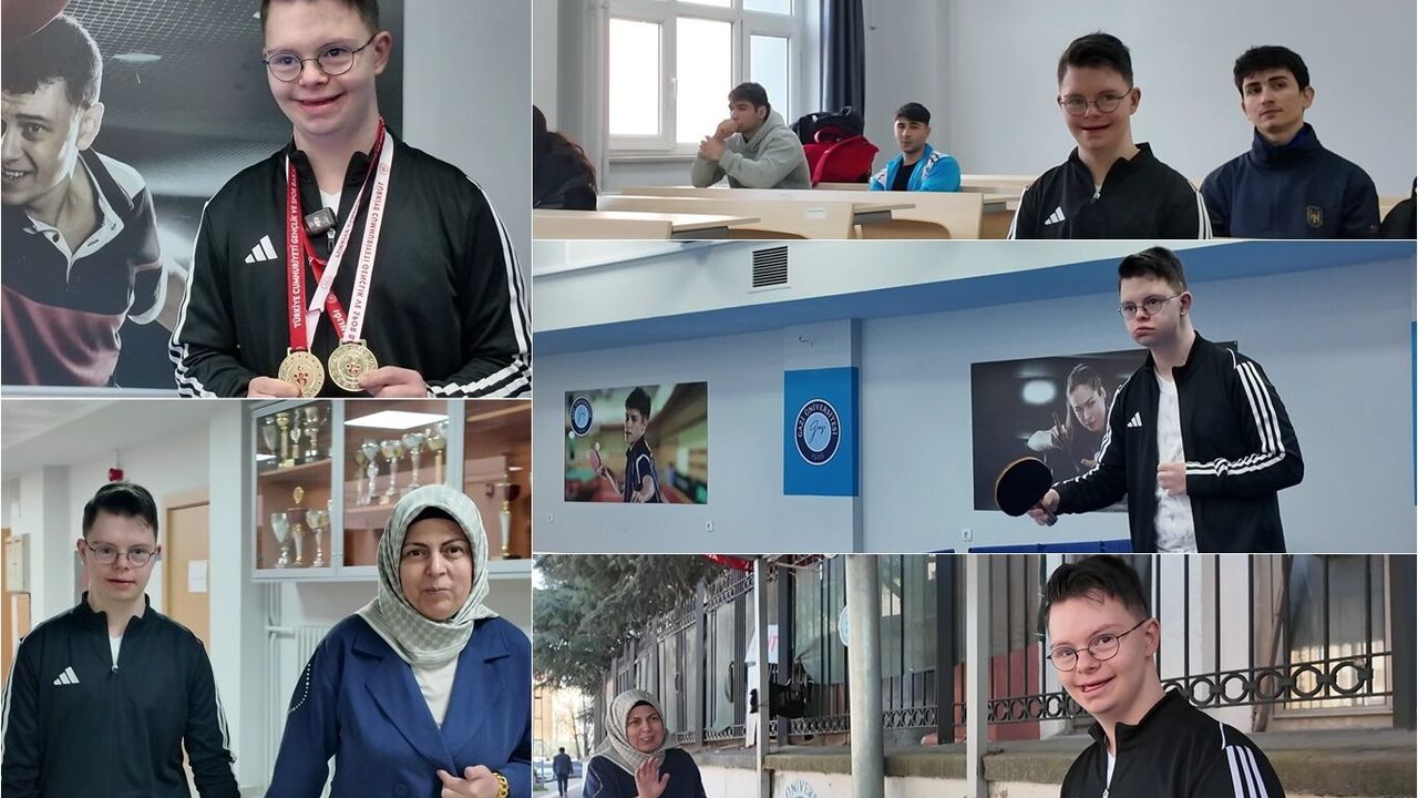 Gazi Üniversitesi Spor Bilimleri Fakültesi Rekreasyon Bölümü 2. sınıf öğrencisi Down sendromlu Alihan Akgün, spora olan ilgisi ve disiplinli çalışmasıyla hem eğitim hayatını sürdürüyor hem de başarılarıyla dikkat çekiyor.