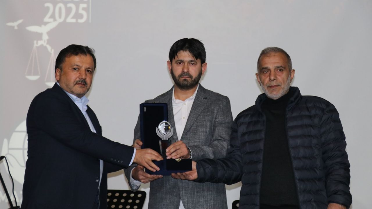 Basın ödülünü İlke Haber Ajansı adına Ankara Temsilcisi Mehmet Sait Çelik'e, MAZLUMDER Genel Başkan Yardımcısı Ali Dalaz ve Malatya Şube Başkanı Bahattin Anıl tarafından verildi.