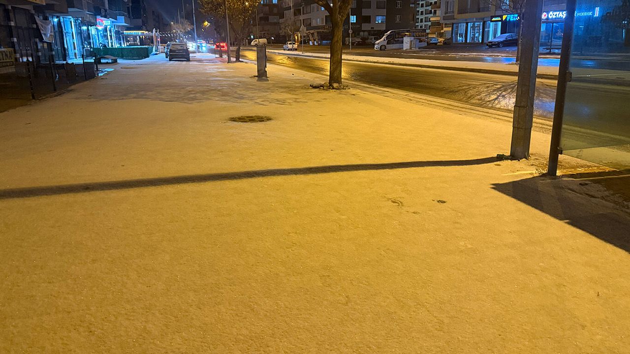 Konya merkezde akşam saatlerinde kar yağışı etkili oldu.