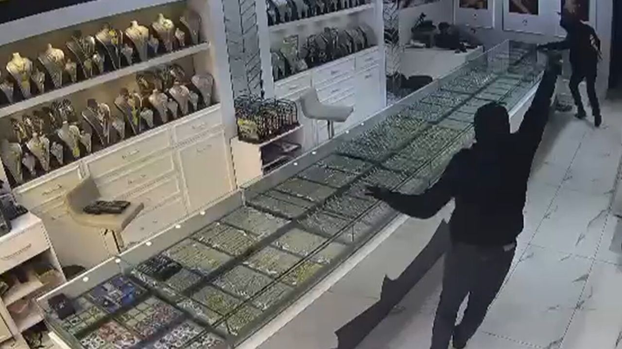 İş yerine ait kamera görüntülerinde, soyguncuların kuyumcu dükkanına giriş anında saldırgan tavırlarla hareket ettiği görülüyor.
