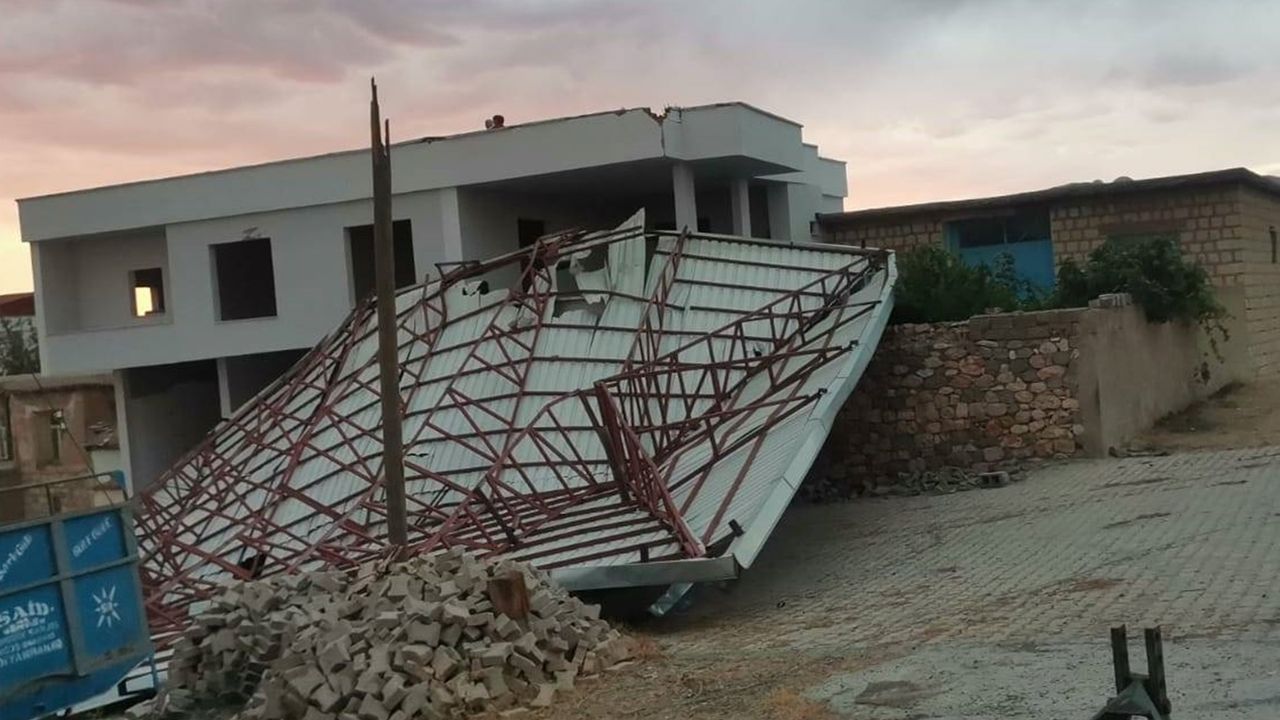 Şiddetli rüzgar nedeniyle Hazro ilçesine bağlı kırsal Kulaçtepe Mahallesi'nin cami çatısı uçtu.
