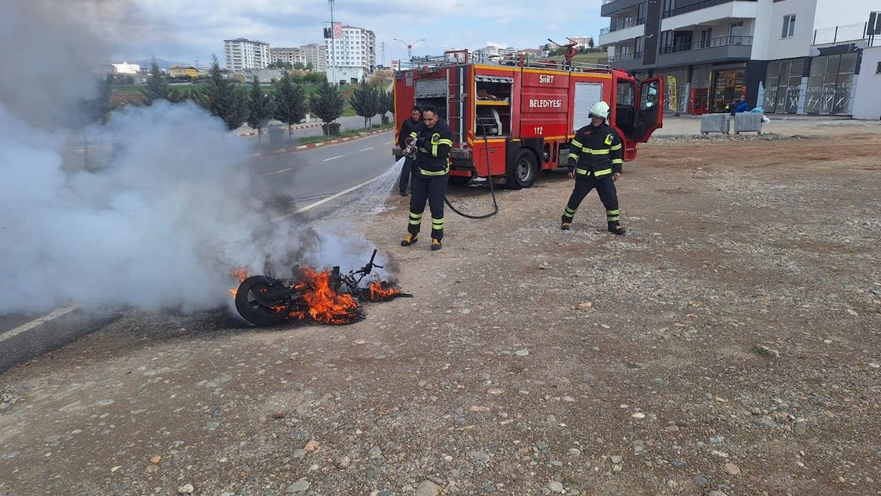 Olayda herhangi bir yaralanma yaşanmazken, motosiklet tamamen yanarak hurdaya döndü.