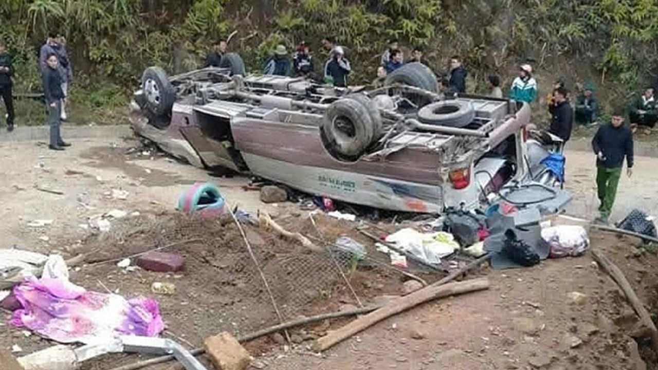 Lao Cai eyaletinde 19 kişiyi taşıyan otobüs, dağlık yolda kontrolden çıkarak devrildi.
