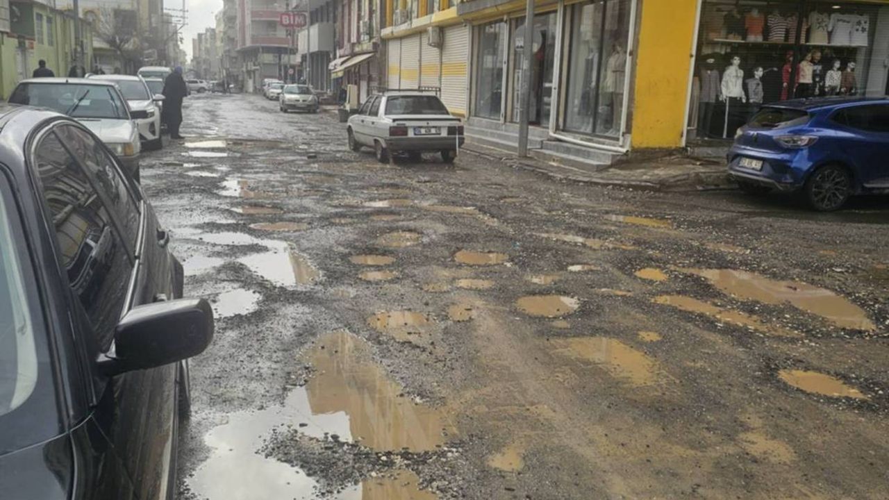 Uğur Boran Caddesi üzerindeki çukurlar, su birikintileri ile dolarken oluşan çamur nedeniyle de halk büyük sıkıntı çekiyor.