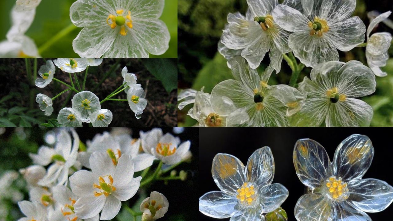 Bitkinin en dikkat çekici yönü, yağmurla birlikte renk değiştirmesi. Çiçeklerin beyaz, opak görünümü suyla temas ettiğinde tamamen şeffaf kristalimsi bir hal alıyor. Bu durum, yalnızca nemli ortamda sürüyor; kuruduğunda çiçekler yeniden beyaz rengine dönüyor. Şeffaflaştığında, çiçeğin ince damarları ve yapısal destekleri görünür hale gelerek ona hayaletimsi ve eterik bir görünüm kazandırıyor.