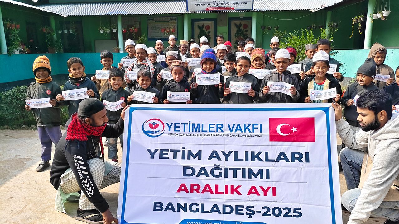 Yetimler Vakfı, dünyanın farklı coğrafyalarında yaşayan yetim çocuklara yönelik yardım çalışmalarını aralıksız şekilde sürdürüyor. Bu kapsamda Bangladeş'te bulunan Fesih Güler Hoca Yetimhanesi'nde, yetim çocuklara aralık ayı yetim aylıkları ulaştırıldı.